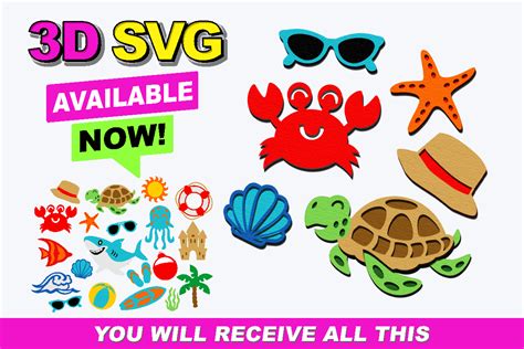 Summer Beach Elements 3D SVG